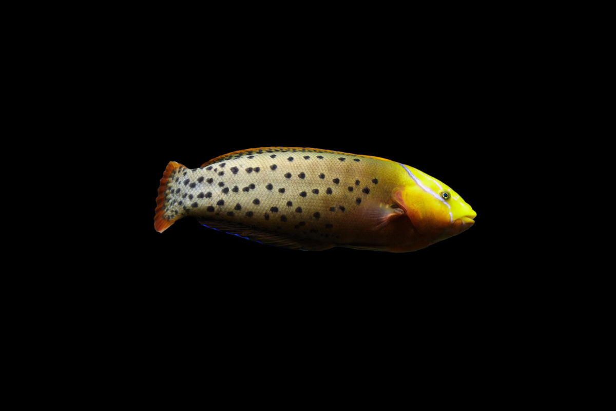 The Formosa Wrasse is a large, striking wrasse species, admired for its bold coloration and commanding presence in the aquarium. Juveniles display vibrant patterns of green, orange, and black, while adults develop more muted yet equally impressive markings, often with a green body and intricate facial striping. Known for their intelligence and activity, Formosa Wrasses are powerful swimmers that bring energy and personality to large marine systems.