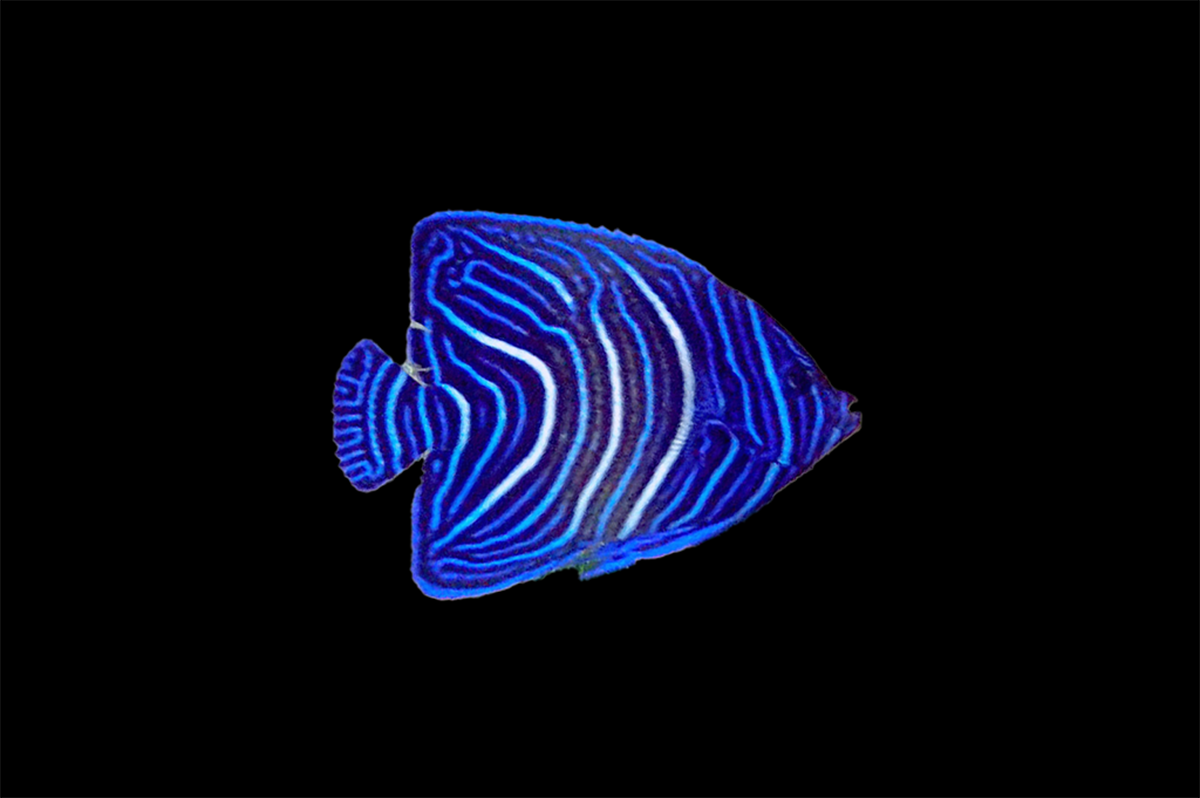 The Koran Angelfish is a striking and hardy species known for its dramatic transformation from juvenile to adult. Juveniles display vivid blue and white semicircular patterns, while adults develop rich greenish-blue bodies adorned with yellow scale edges and a bold facial mask. This impressive angelfish makes a commanding centerpiece in large aquariums, admired for both its beauty and personality.