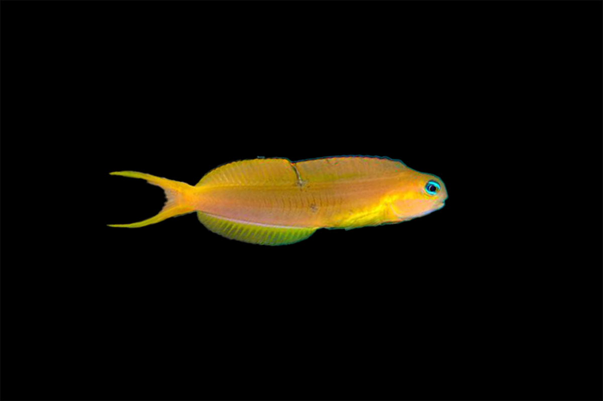 The Midas Blenny is a stunning and active reef fish, admired for its sleek body shape and vibrant golden-yellow coloration that shimmers beautifully under aquarium lighting. Known for its eel-like swimming motion and curious nature, this blenny often perches in rock crevices and darts out to explore its surroundings. Its personality and striking color make it a standout addition to many reef aquariums.