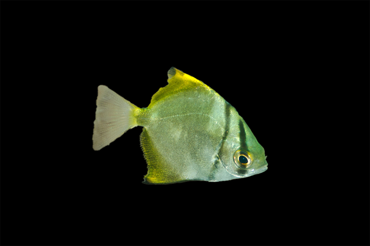 The Mono Argentus, also known as the Silver Moony, is a striking and graceful fish recognized for its silvery, laterally compressed body and bold black vertical bars. Its reflective, metallic sheen makes it a captivating addition to both marine and brackish aquariums. Active and schooling in nature, Mono Argentus adds dynamic movement and elegance to the mid to upper water column.