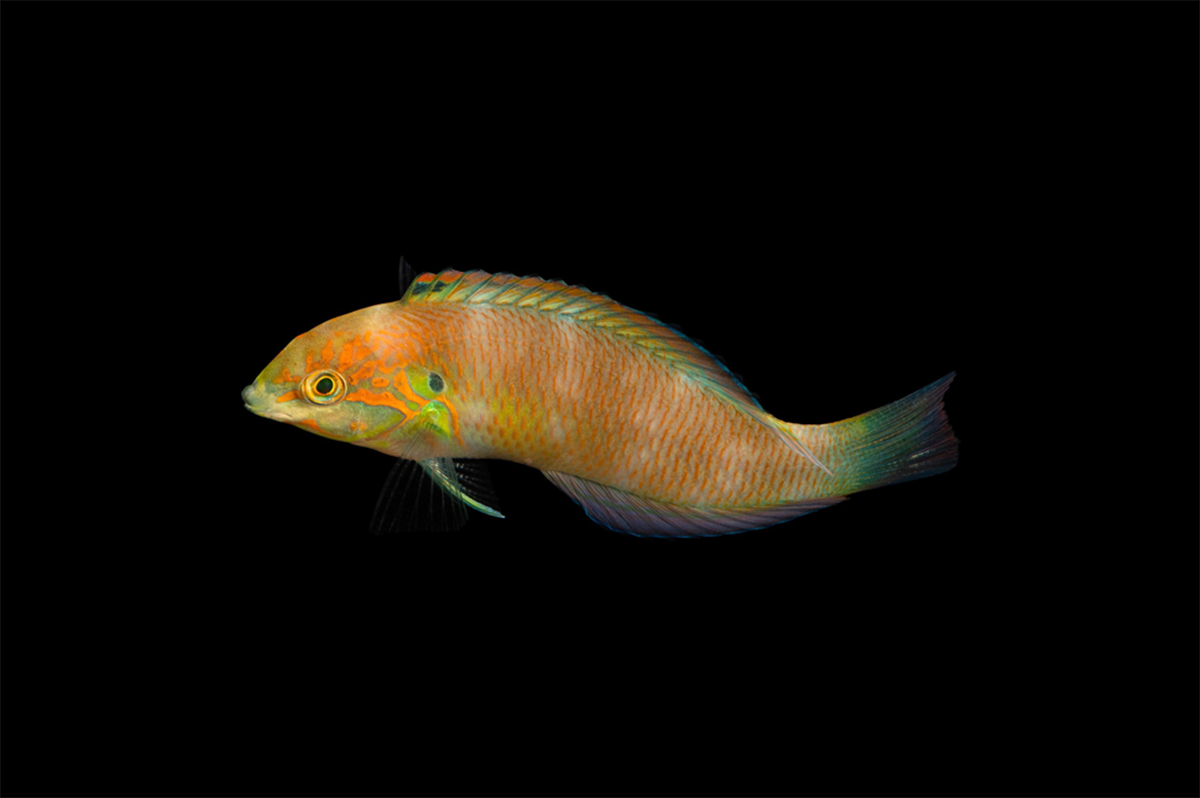 The Moyeri Wrasse is a vibrant and active reef fish, known for its striking coloration of bright green and blue hues with a distinctive orange stripe along its head. Juveniles often display bold, contrasting patterns that gradually mellow with age. This wrasse is highly energetic, constantly exploring rockwork and sandbeds, making it a lively addition to marine aquariums.