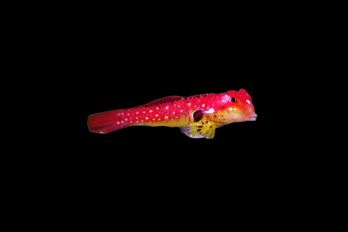 The Red Dragon Dragonet is a brilliantly colored species known for its deep red body accented with intricate patterns, giving it an exotic, jewel-like appearance. Similar to other dragonets, it spends much of its time gliding gracefully across the substrate and live rock in search of tiny prey. Its striking looks make it a prized addition to reef aquariums, though it requires a mature system with plenty of live rock to sustain its natural feeding habits.