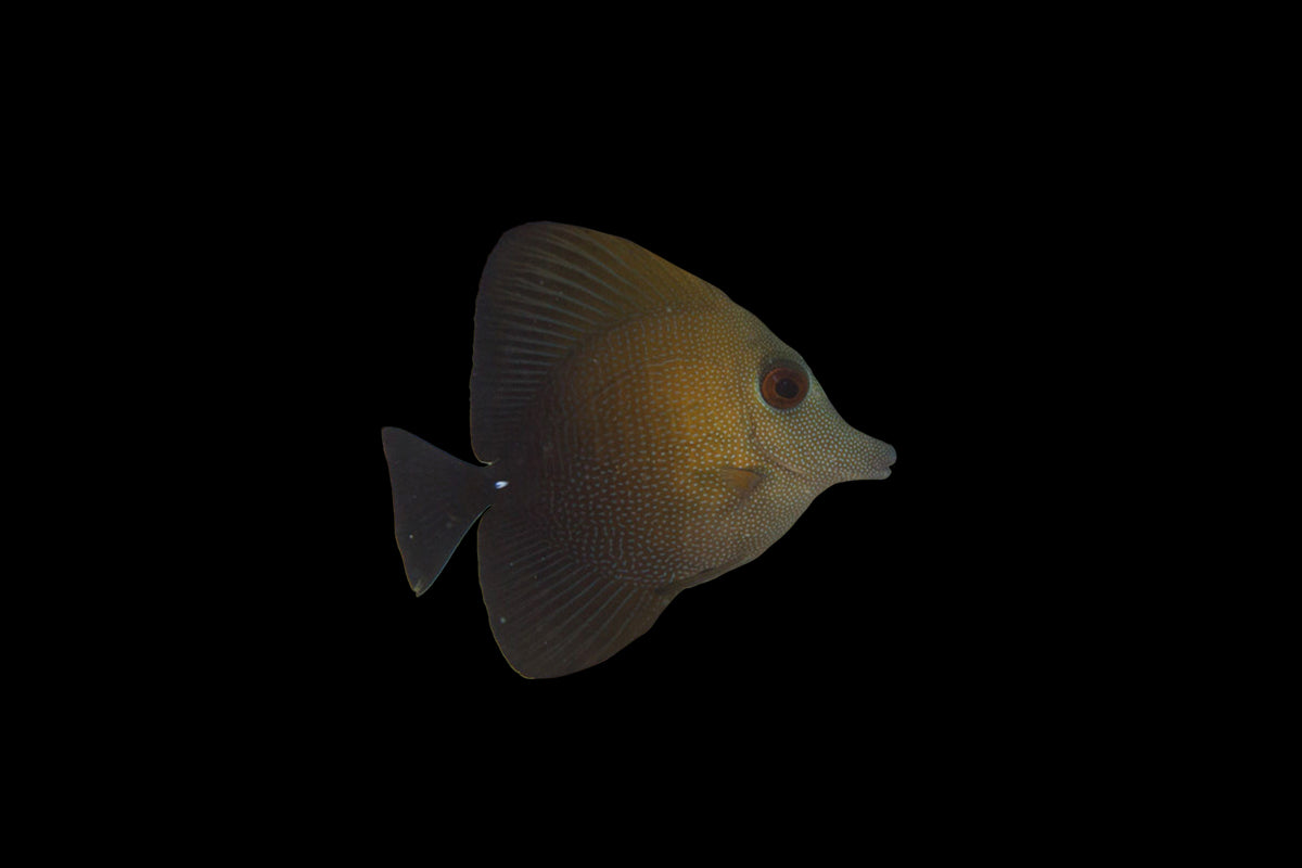 The Scopas Tang is a sleek and peaceful surgeonfish, recognized by its deep brown body, subtle yellow accents along the fins, and elegant oval shape. Its calm temperament and active grazing behavior make it a versatile addition to community and reef aquariums.