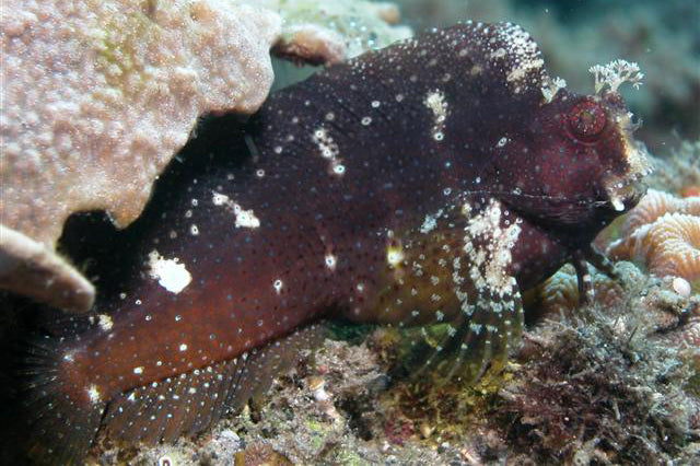 The Starry Blenny is a charming and active reef grazer, easily recognized by its mottled brown body dotted with bright white or yellow spots that resemble stars. Known for its lively personality, this blenny spends much of its time perching on rocks, grazing on algae, and exploring crevices. Its small size and constant activity make it a delightful and functional addition to reef aquariums.
